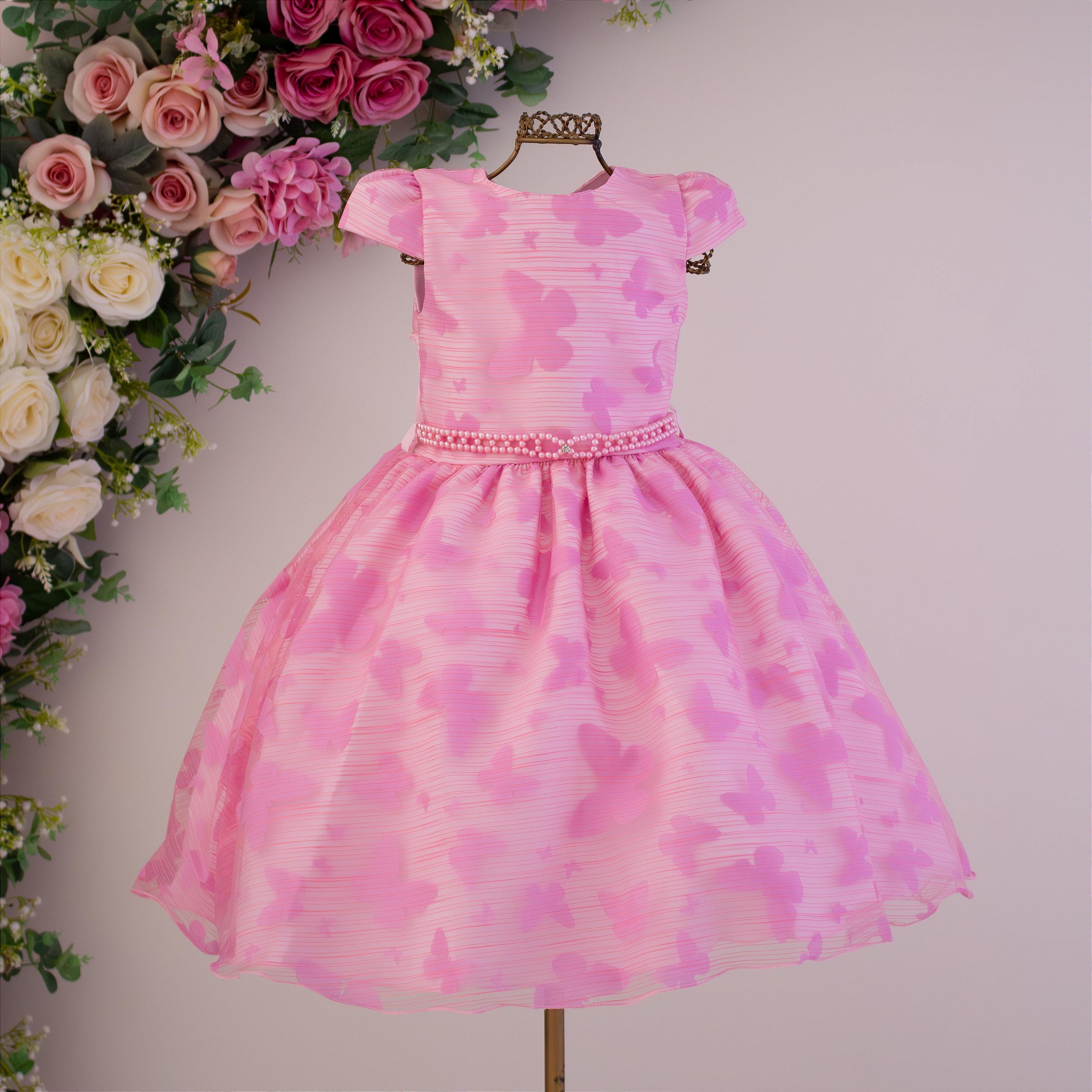Vestido Infantil Rosa Borboleta Devorê 1 ao 4