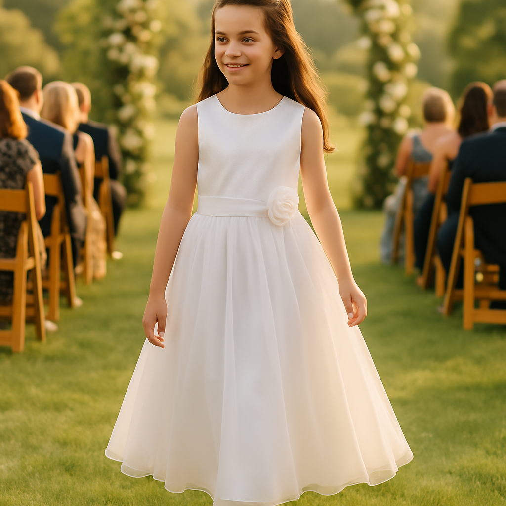 6371 Vestido Daminha Longo Branco Flor 4 ao 16