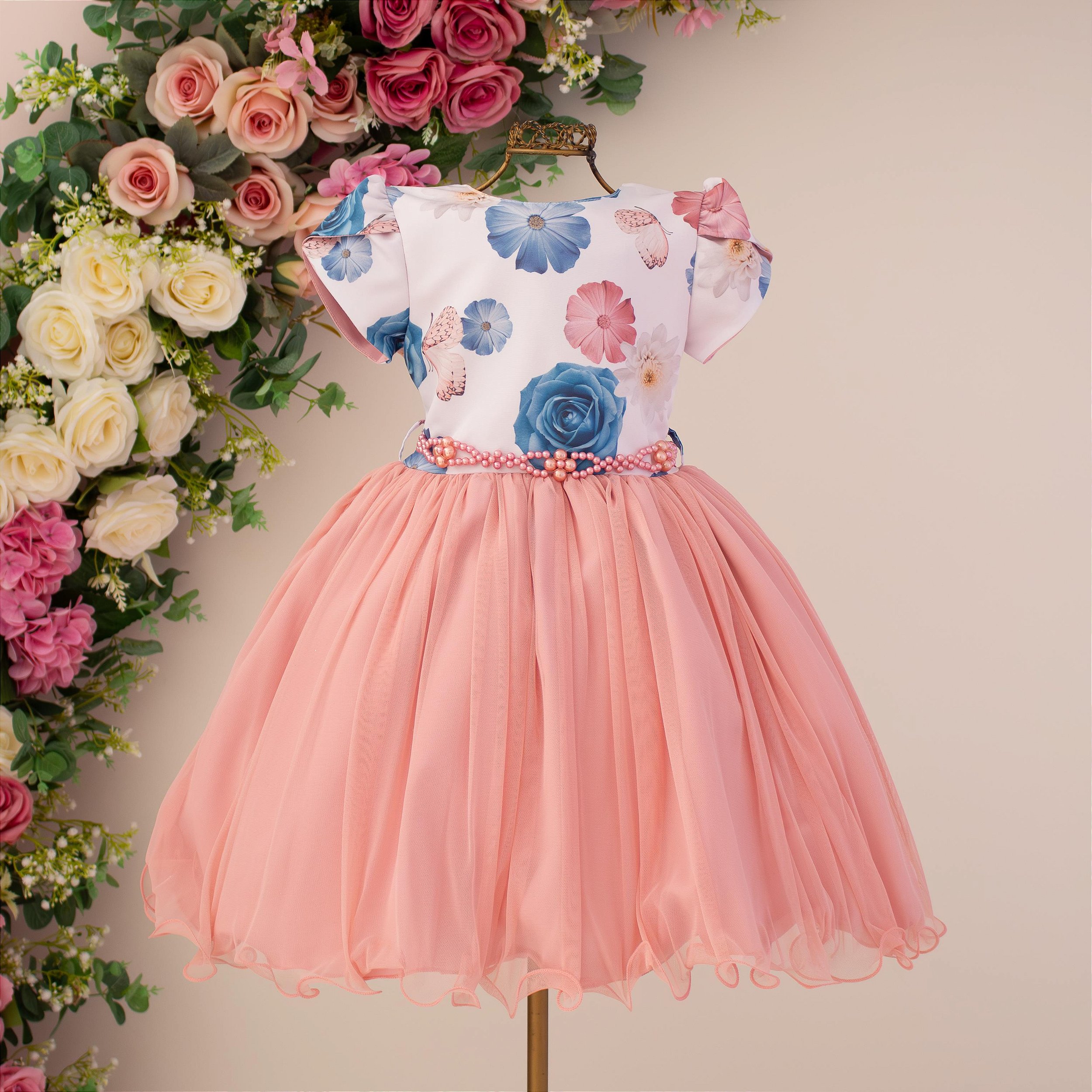 Vestido Detalhe Estampado Saia Rose 4 ao 12